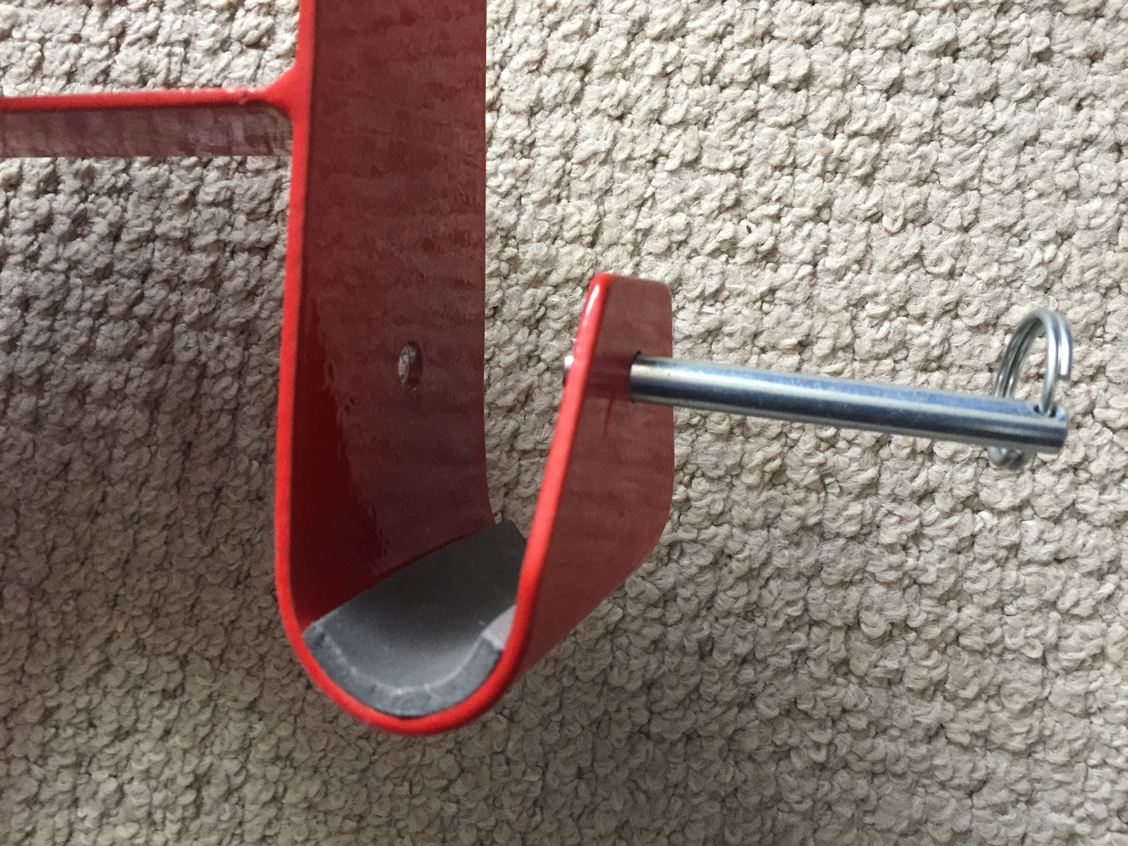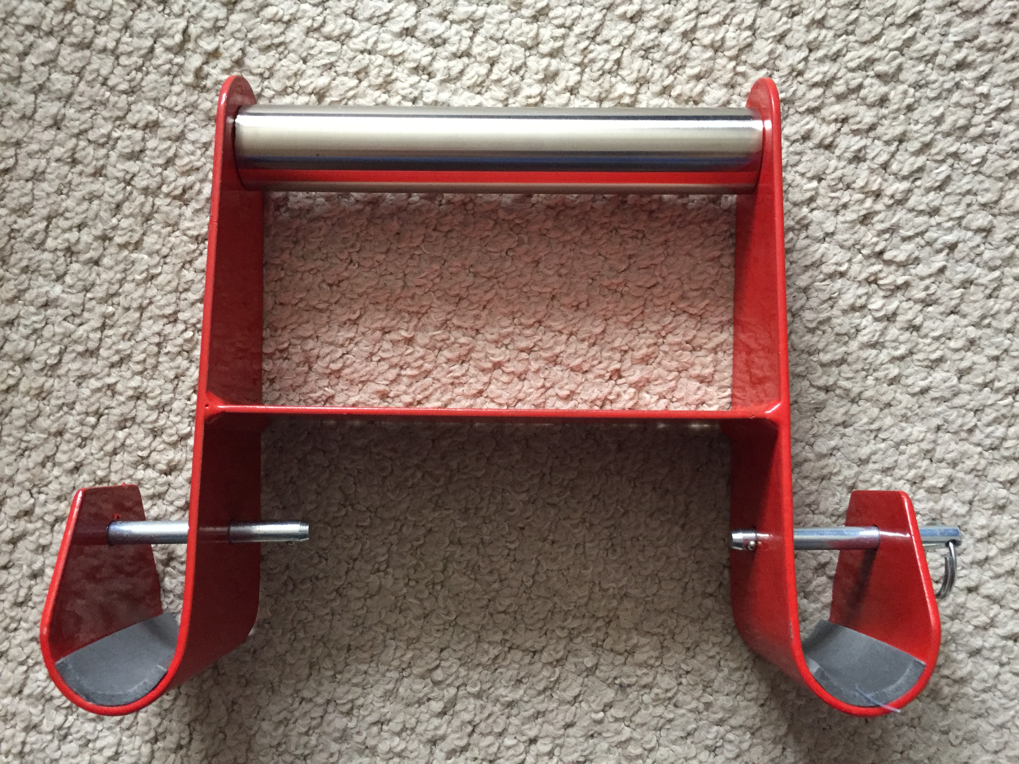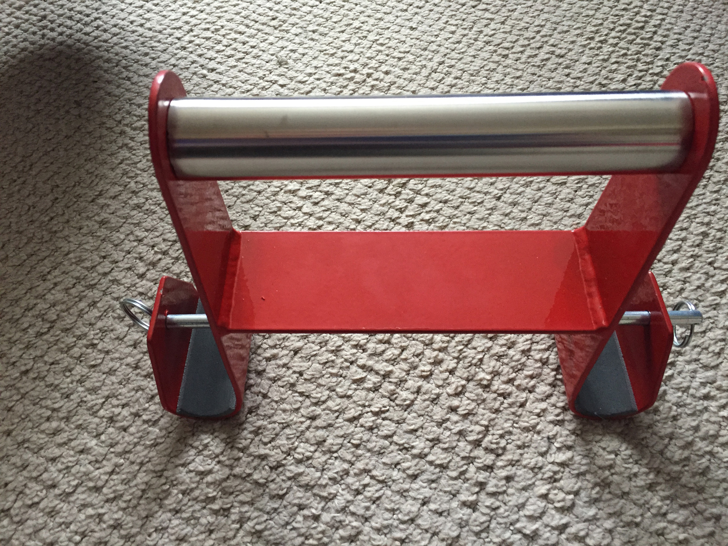 All you need to do is pull out the two self-locking pins and place (for example) a strong carrier bag with some weight in on each peg and push the pins back in. Then the user places the bad hand onto the handle and places the good hand fully over the top, to lock the bad hand in place. Lift, put down for ten repetitions times three, get stronger.