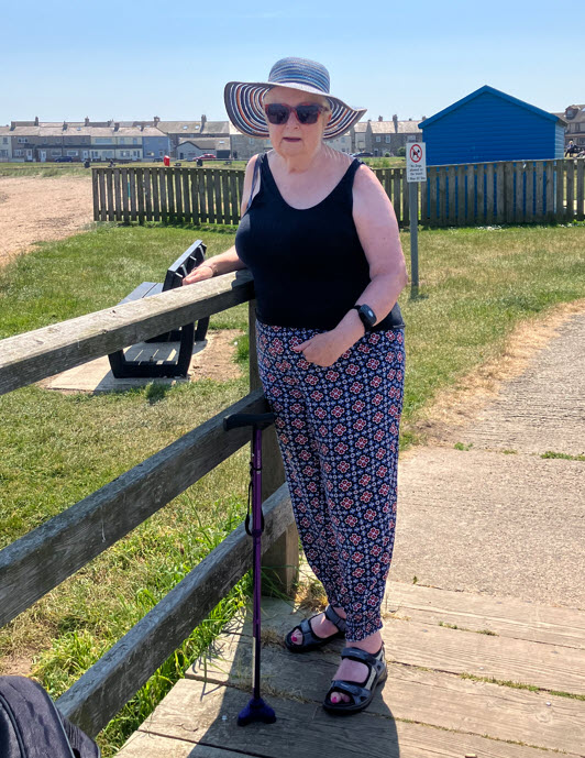 My goal on the 3rd July the anniversary of my stroke, was to walk on the beach and swim in the sea. I’ve Brought. a new swimming costume. ‘We will work towards this ,and if its nice next week we will go down to the harbour by the beach and get you walking outside. ‘ said Maria. My mobility scooter terrifies me but is key to my independence. I got out of the scooter unassisted and held onto the rail, looking out at the sea then took a few steps back to the scooter. Wow! As we made our way home, I realised what I had done, I stopped the scooter and hugged Maria, ‘Thankyou’ I said through tears.