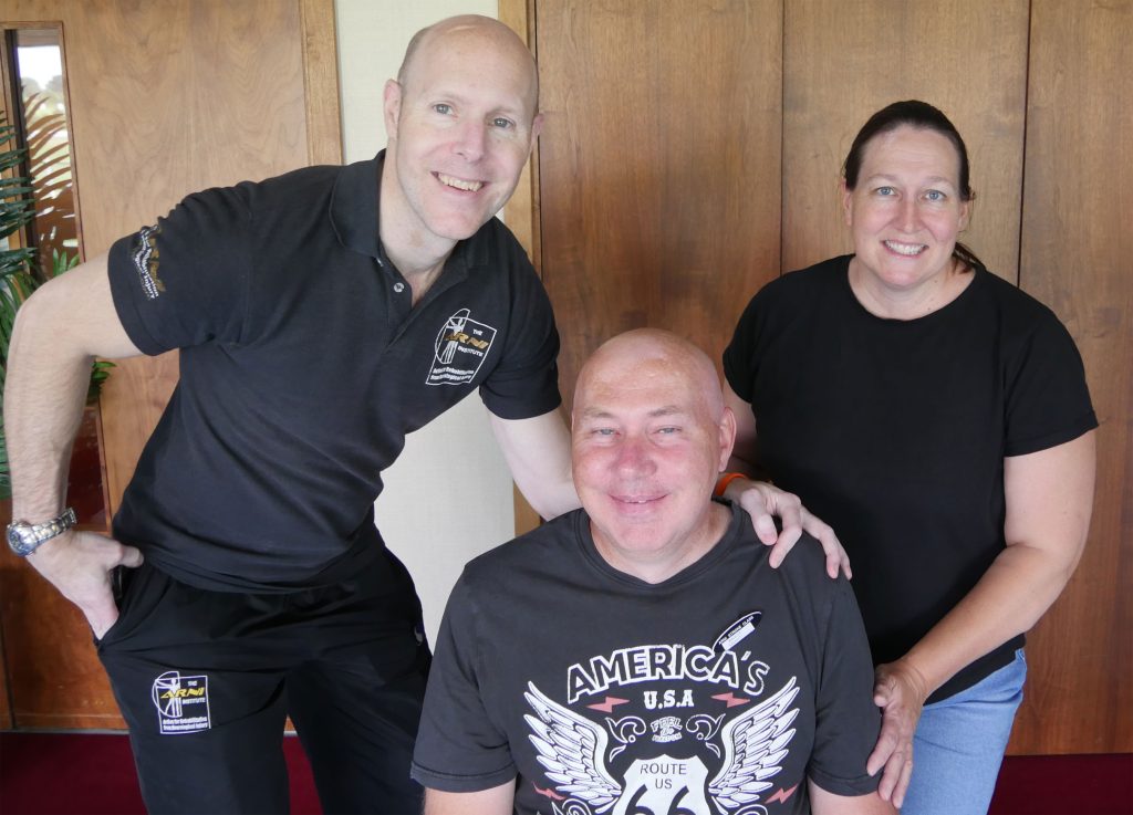 My wife first contacted ARNI way back when I was in hospital, but as I was receiving regular physio. Also, we watched the first video which was about getting onto the floor, and that just seemed absolutely impossible. We just stayed with that rather than having multiple conflicting programs. I read my way through Tom’s book – ‘ How to be a successful stroke survivor’ and secured a day and a half with Tom. Having read Tom’s book and the testimonials within, I expected it to be hard work, but boy it was. To the training mat I walked where I spent time getting to and off the floor. The phrase of the day was “ that’s good, do it again!”. I’d read the book and watched the video so had an idea of what to do, but had think about each step on the fly.