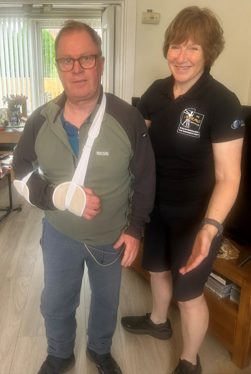 Peter’s movement in his upper limb has greatly improved. This has been as a result of the stretching exercises that Peter has been shown by Carol through her training with ARNI, which he does regularly, followed by strength work using a light dumbbell.